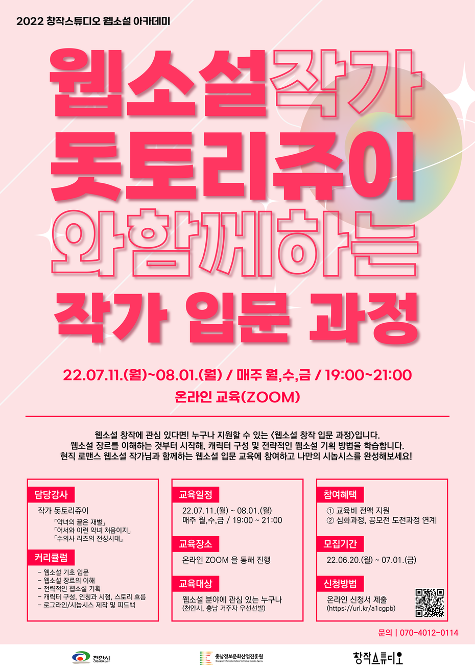 [충남정보문화산업진흥원] 2022 창작스튜디오 웹소설 작가 돗토리쥬이와 함께하는 ‘웹소설 작가 입문 과정’